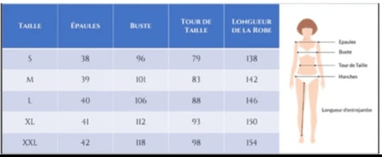 J'ai trouvé le guide des tailles très utile pour choisir la robe parfaite. Les conseils étaient clairs et précis, ce qui m'a aidé à faire le bon choix.
